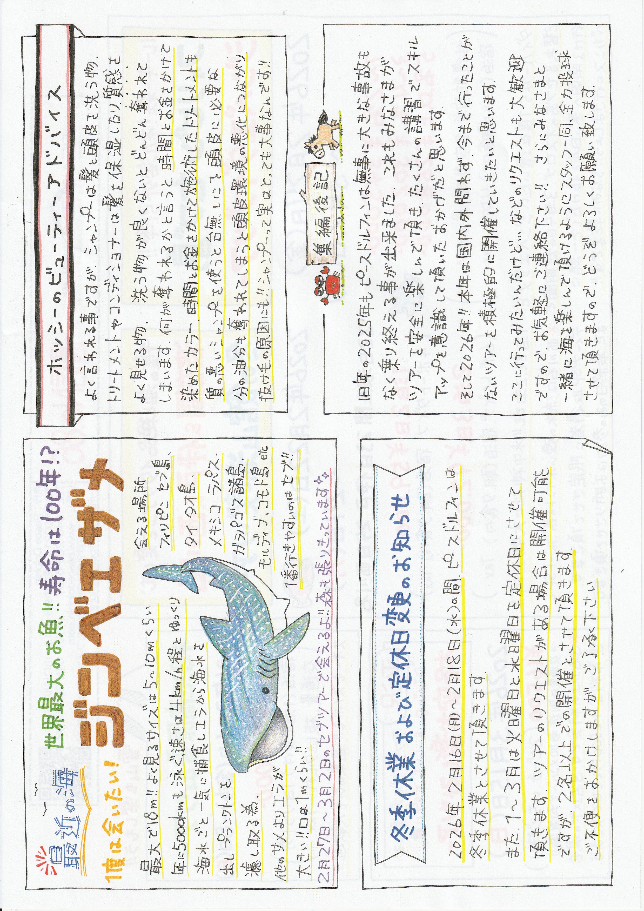 そろそろみなさまのお手元にピースドルフィン通信更新と1月~3月のツアー案内のハガキが届いていると思います。